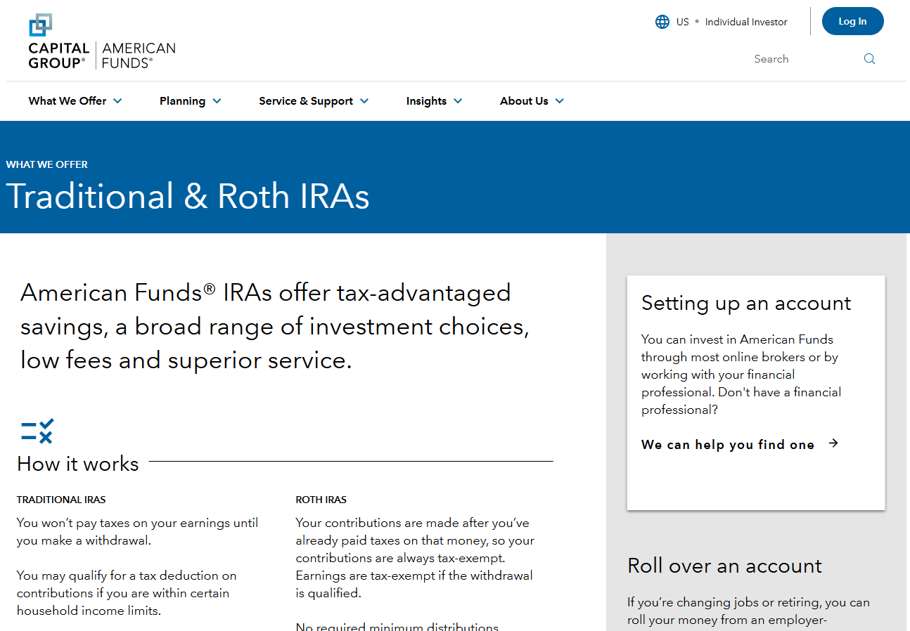 American Funds is known for its strong track record in actively managed retirement portfolios. Its IRAs and Roth IRAs include funds that consistently demonstrate long-term outperformance, guided by experienced teams of portfolio managers. Retirement investors who prefer professional management over index-based strategies often gravitate toward American Funds for their stability and proven methodologies.