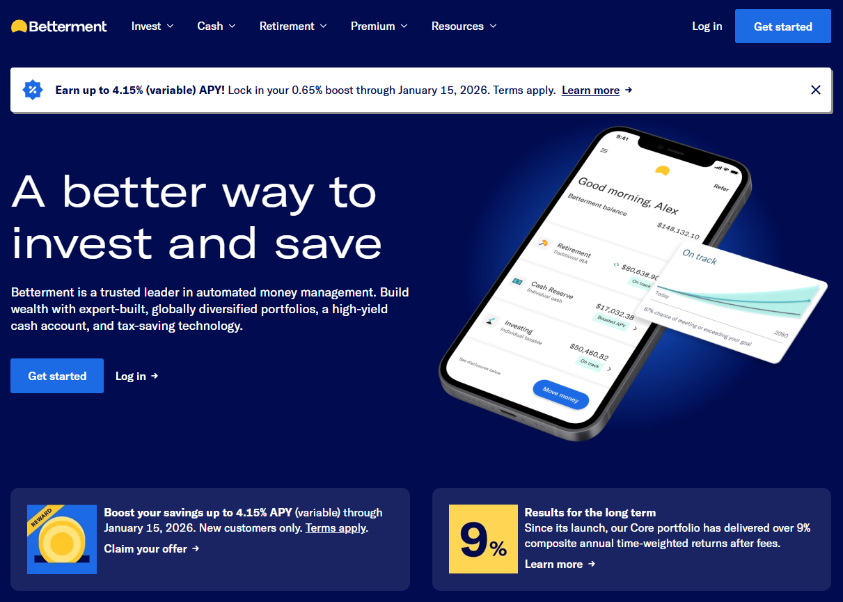 Betterment is a leading robo-advisor designed for individuals seeking automated, low-cost retirement investing. Through its smart portfolio allocations and tax-efficient strategies, Betterment helps users build retirement wealth without managing investments manually. Its IRAs and Roth IRAs are optimized using algorithms that rebalance portfolios and reduce tax exposure.